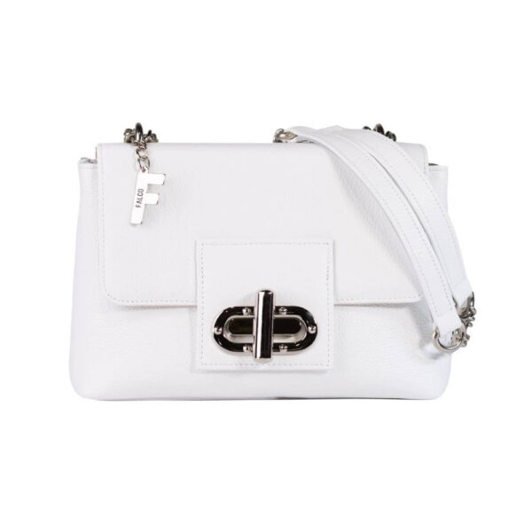 Tašna izrađena od kvalitetne prirodne kože. Veoma je praktična, sa dovoljno mesta za najosnovnije. Ima dugačak metalni lanac sa kožnim dodatkom za ugodno nošenje. Lanac je podesiv na dve veličine. Izgled tašne je upotpunjen brendiranim priveskom Falco i elegantnom bravicom.