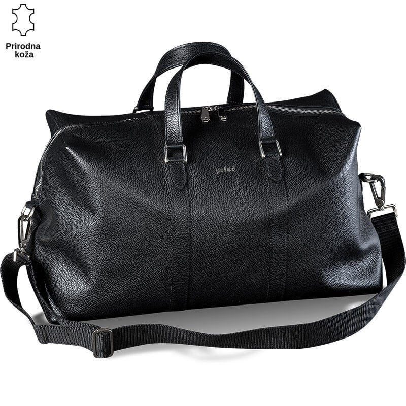 Ova putna torba savremenog dizajna i neprikosnovenog kvaliteta je ručno izrađena od rebraste goveđe kože u crnoj boji. Zatvara se dvostranim rajsferšlusom sa poliranim metalnim zupcima, koji je iste srebrne boje kao i metalni logo Princ na prednjoj strani torbe. Dve velike i jake kožne ručke su povezane sa torbom metalnim držačima, a sa obe strane torbe takođe se nalaze metalni držači na koje se po potrebi može zakačiti široki kaiš od ojačane gurtne podesive dužine, za nošenje torbe preko ramena. Unutrašnjost je postavljena čojom, i sadrži jedan veliki džep za novac i dokumenta. Pogodna je za poslovna putovanja, ali i za godišnje odmore. Dolazi upakovana u tkanoj vrećici.