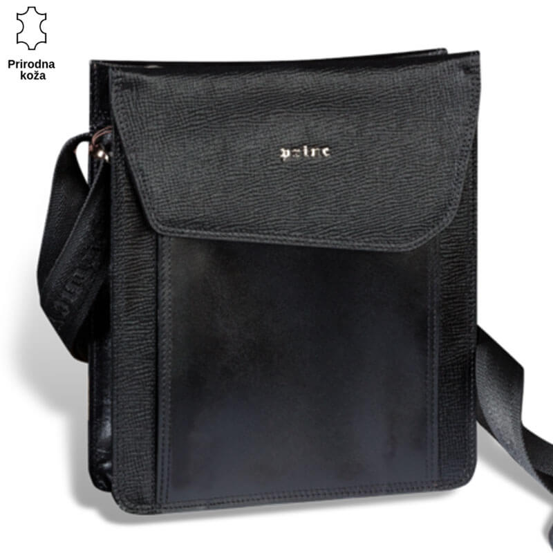 Ova funkcionalna muška torbica ručno je izrađena od visokokvalitetne goveđe kože. Prednji deo je napravljen od kombinacije glatke i rebraste kože, dok je ostatak torbe od rebraste. Odozgo se zatvara rajsferšlusom sa poliranim metalnim zupcima, iste boje niklovanog metala kao i metalni logo Princ na prednjoj strani. Na poleđini se nalazi džep sa istim rajsferšlusom. Unutrašnjost je presvučena svilom, bez pregrada. Sa jedne strane ima dva džepa za mobilni telefon, ključeve, kartice i sl., a sa druge jedan džep koji se zašnirava. Napred, ispod poklopca koji se zatvara magnetima, nalazi se funkcionalan džep. Sa strana torbe zakačen je kaiš od kvalitetne gurtne, podesive dužine, za nošenje preko ramena. Izrađuje se u crnoj, braon i teget boji, i dolazi upakovana u tkanoj vrećici.
