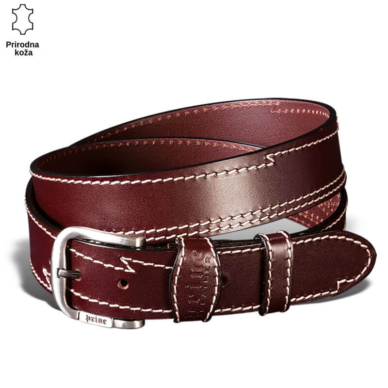 Braon kožni kaiš sa belim šavovima MUŠKI KOŽNI KAIŠ BRAON 253