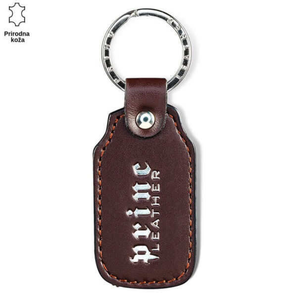 Kožni privezak tamno smeđe boje sa gravurom "Princ Leather". PRIVEZAK OD KOŽE ČETVRTASTI