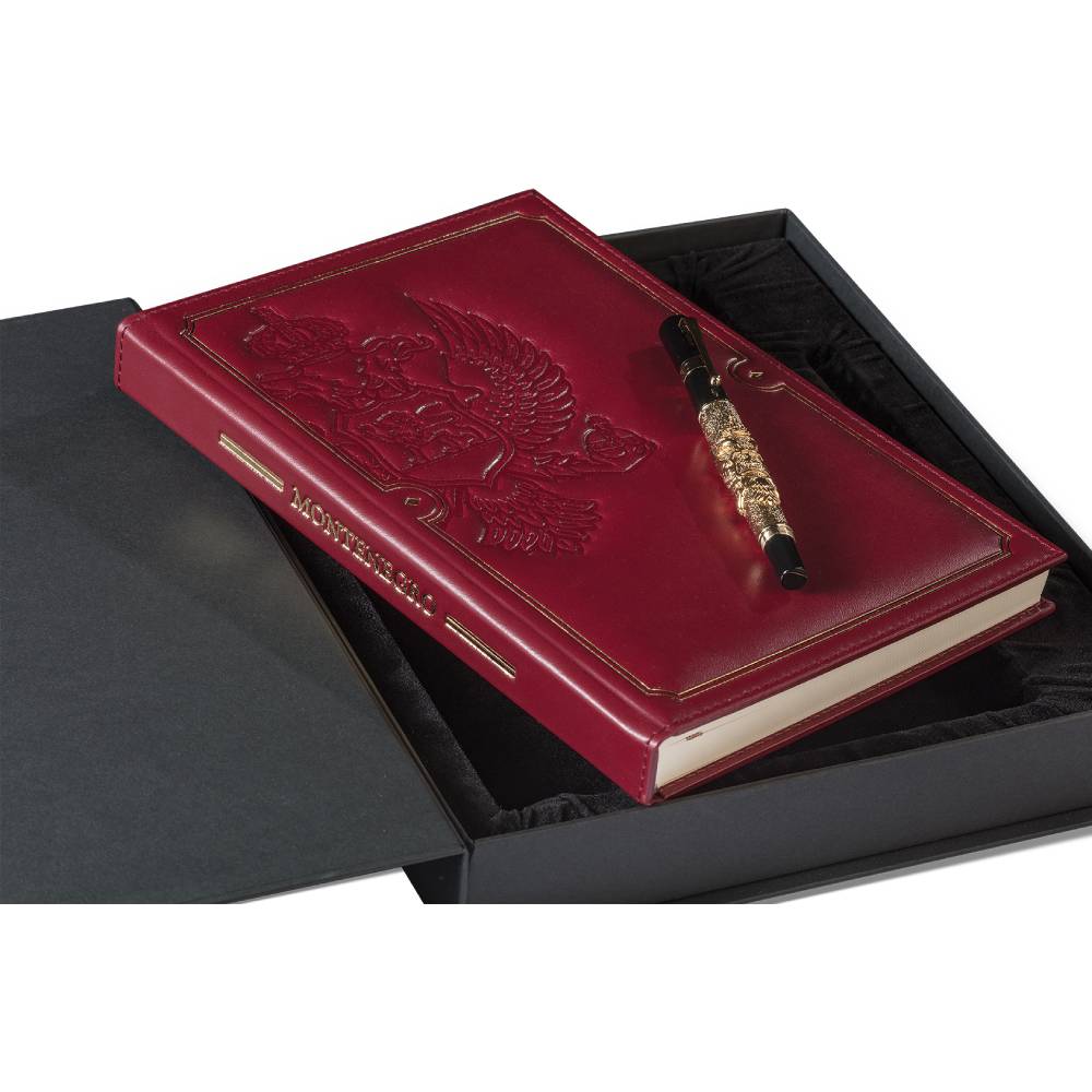 Ovaj set čine rokovnik i olovka upakovani u luksuznu ambalažu postavljenu crnom čojom. Rokovnik je izrađen od visokokvalitetne goveđe kože, sa blokom veličine B5, ima 330 strana, i ukrašen utisnutim grbom Crne Gore u elegantnoj kombinaciji bordo i zlatne boje. Olovka je ručno izrađena a potom pozlaćena ili posrebrena. Sa unutrašnje strane poklopca kutije moguće je staviti personalizovanu pločicu sa posvetom, grbom, logom firme, i sl. Ovo je unikatan i ekskluzivan poklon. Na rokovnik, kao i na luksuznu ambalažu u koju je set upakovan, može se utiskivati logo naručioca.